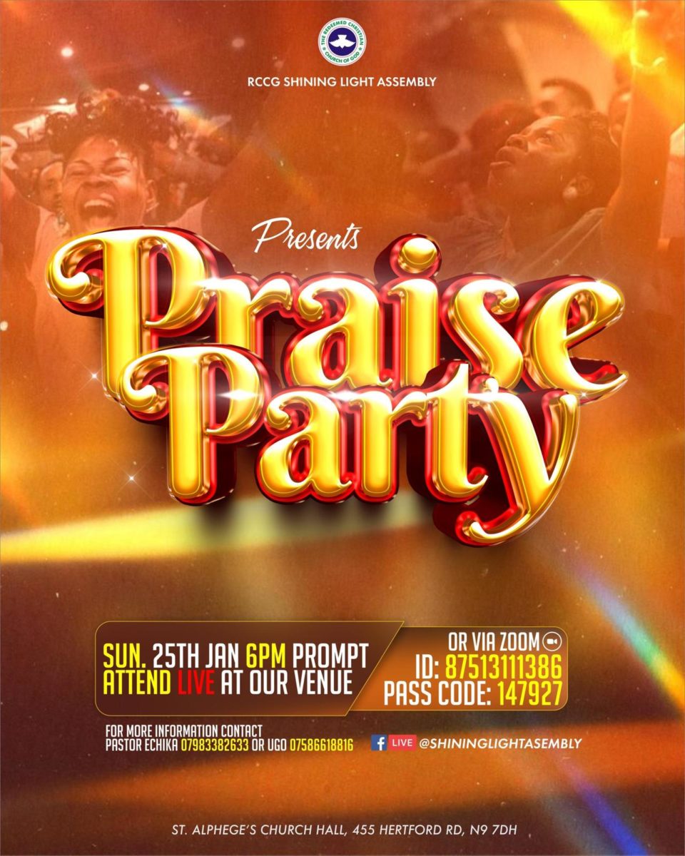 You are invited to our Sunday Praise Party for the month of January, 2026. An evening of praise and worship.