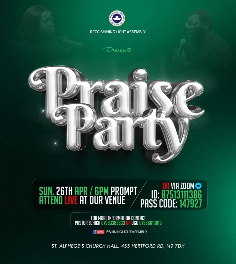 You are invited to our Sunday Praise Party for the month of April, 2026. An evening of praise and worship.