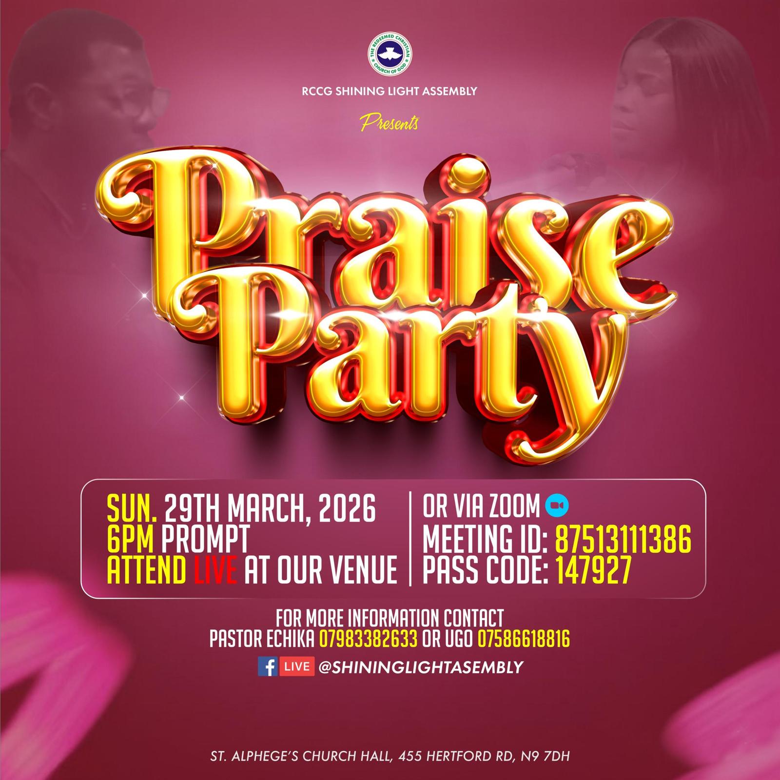The March edition of praise party in 2026. Remember to join us next Praise Party at: St. Alphage’s Church Hall, 445 Hertford Road, Edmonton N9...